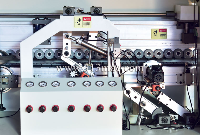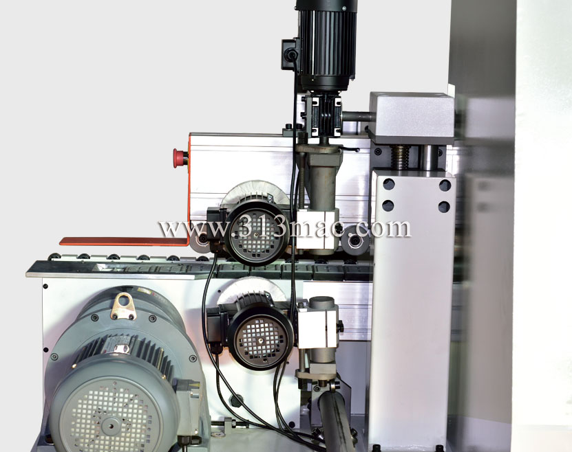 粗、精修裝置用于修去加工板材封邊帶上下部分多余的封邊材料,采用靠模自動跟蹤和高頻高速電機等結(jié)構(gòu),保證修邊時板材上下部分的平整光滑。