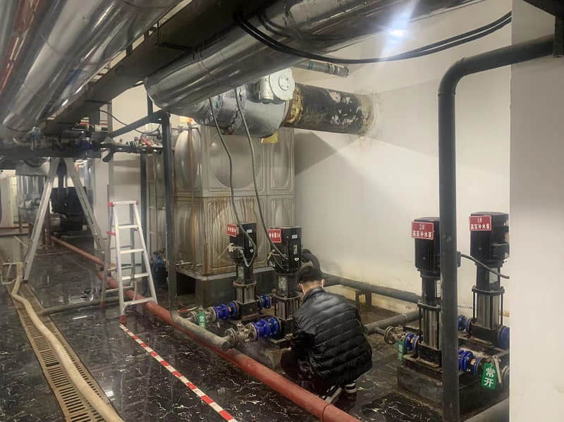 三、消音器安裝:在水泵和風(fēng)機(jī)的出口管道上安裝消音器,降低流體動(dòng)力噪音的產(chǎn)生。同時(shí),對關(guān)鍵設(shè)備的進(jìn)、出口進(jìn)行柔性連接,減少振動(dòng)和噪音的產(chǎn)生。